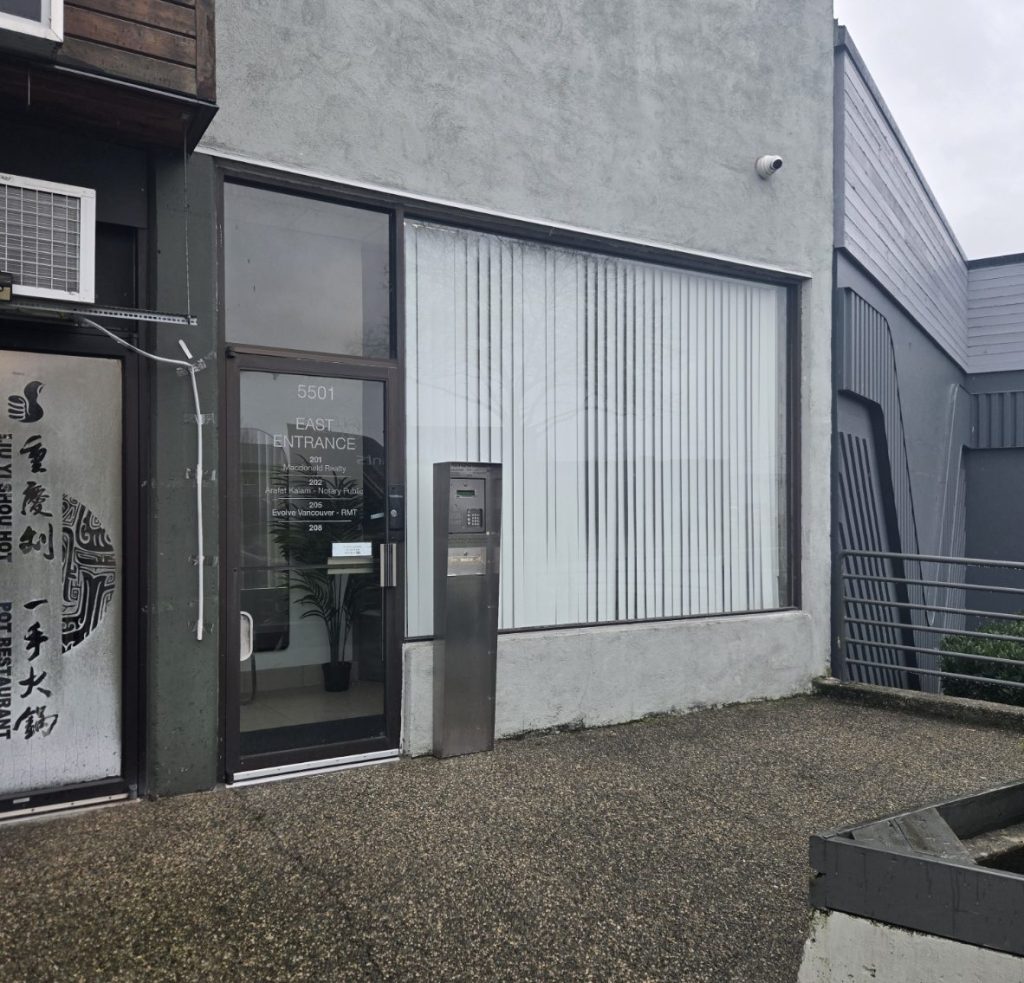 Entrance to Suite 205 at 5501 Kingsway, Burnaby, BC.